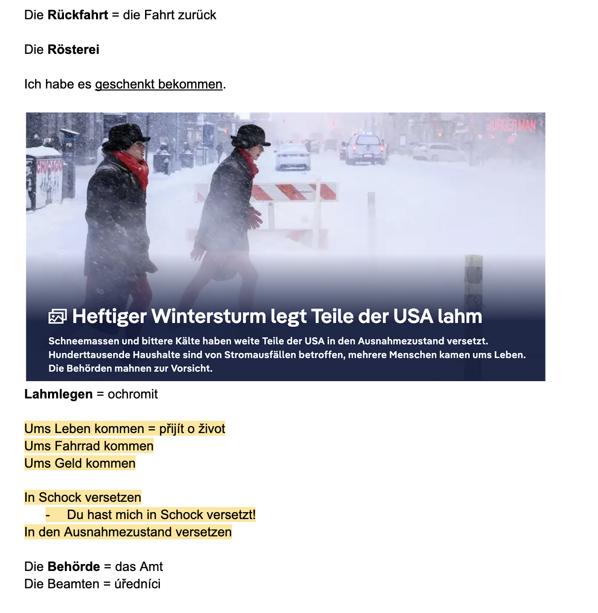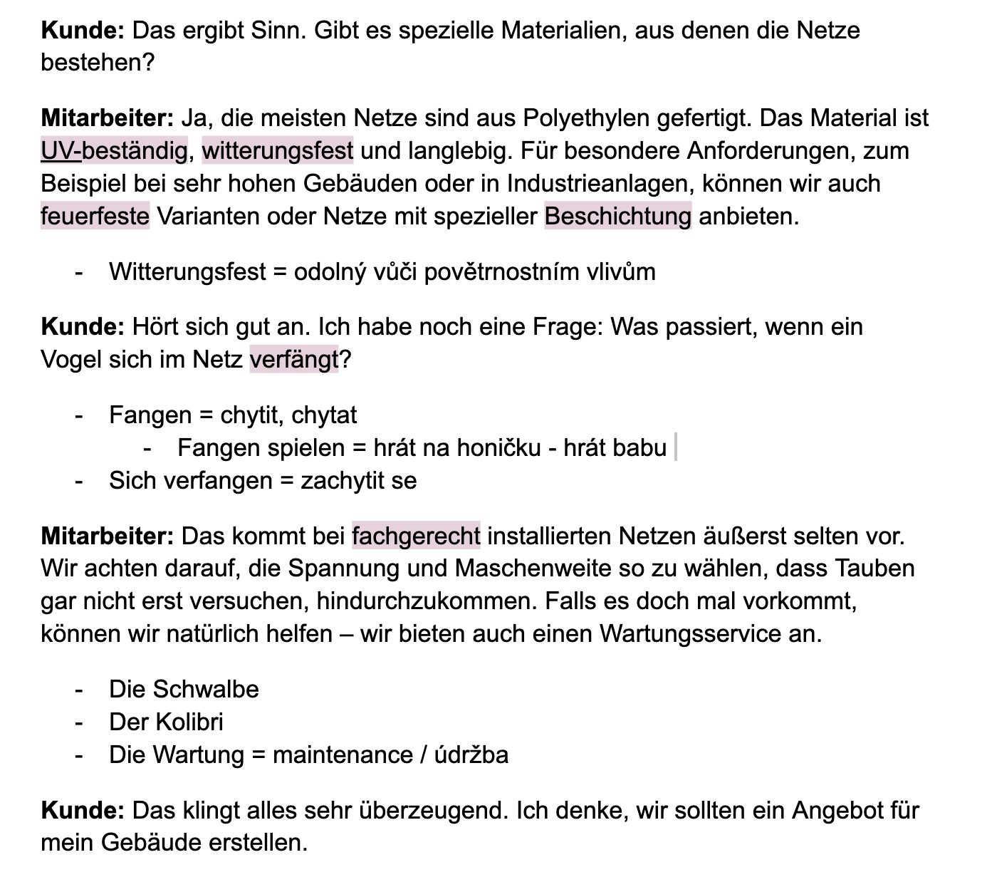 Po lekci dostanete upravený dokument s poznámkami na Google Drive. Najdete v něm slovní zásobu, vysvětlující podklady, odkazy a cokoliv k příští hodině, na čem se domluvíme.